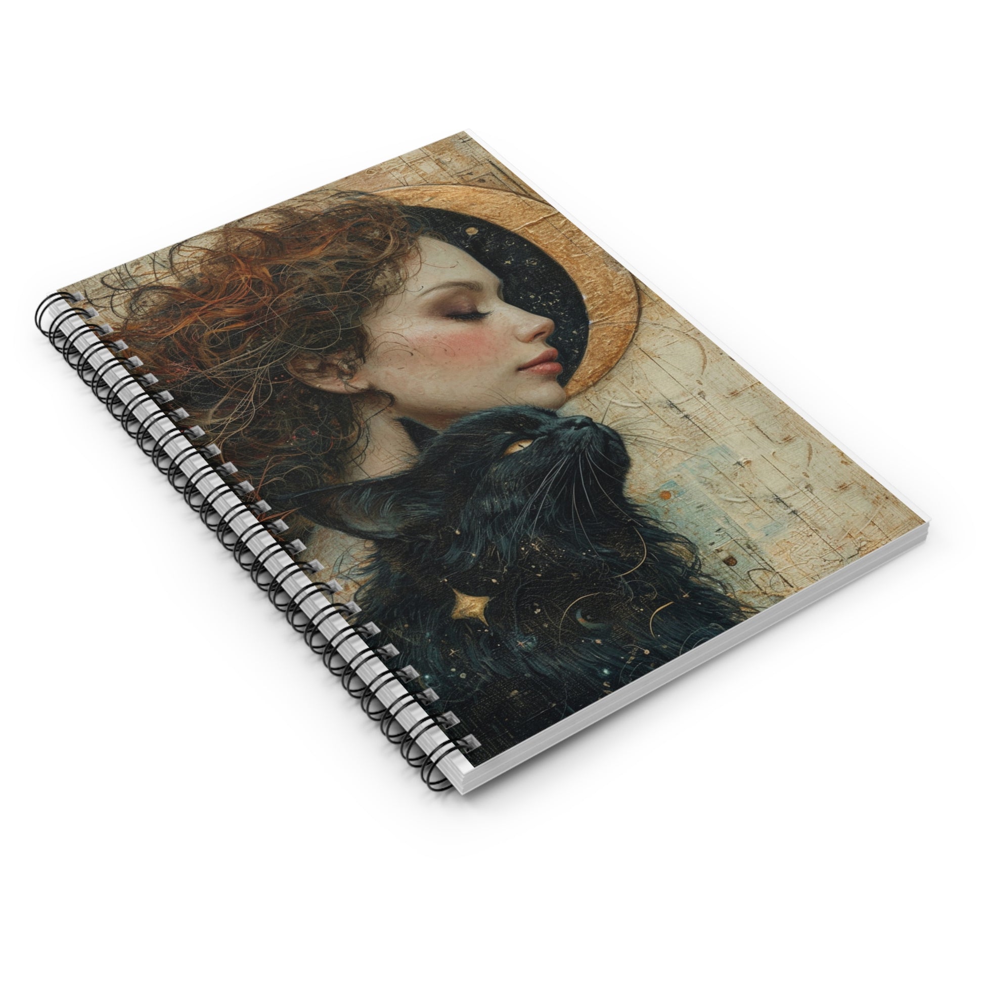 Celestial Muse Notebook — Girl & Black Cat Spiral Journal (Ruled)