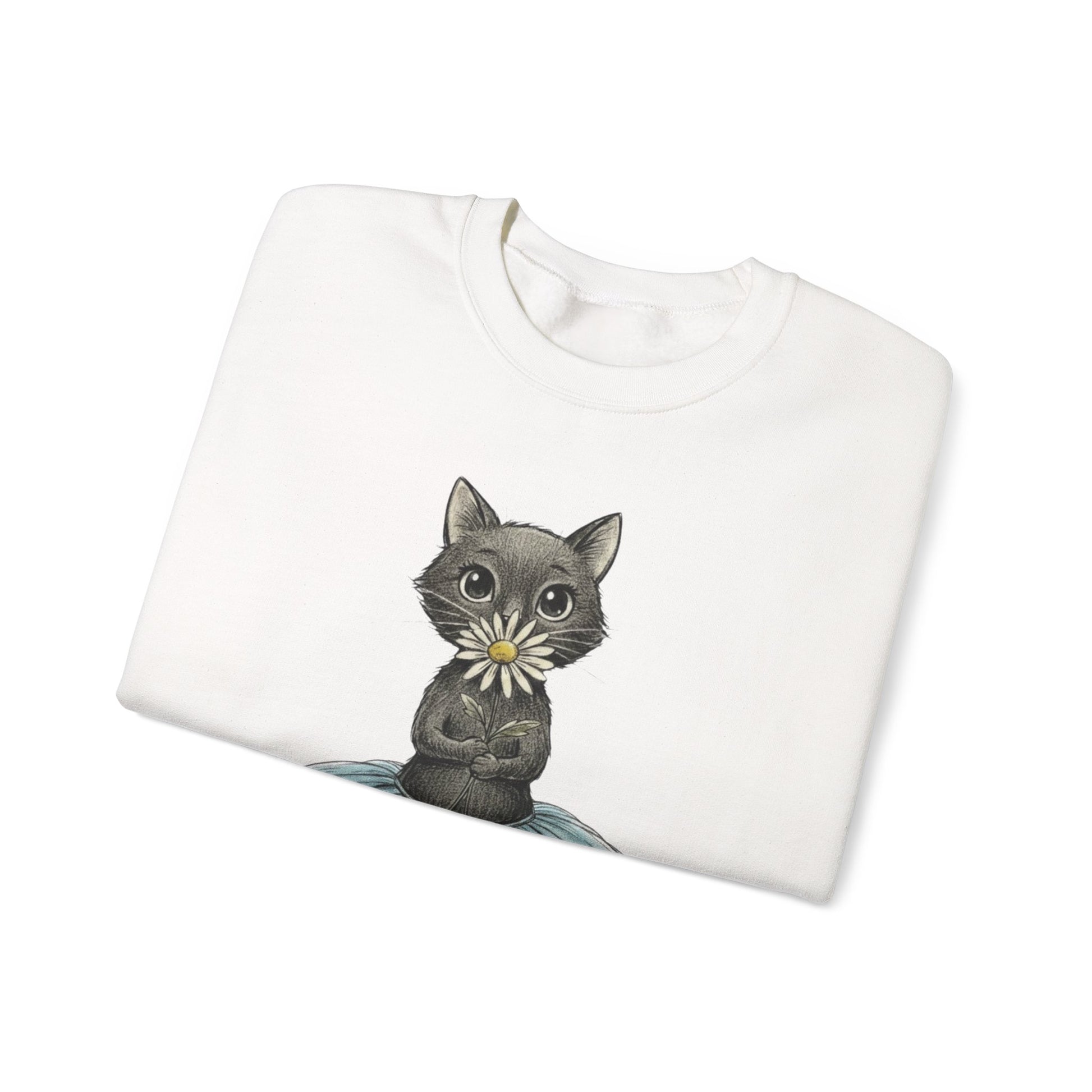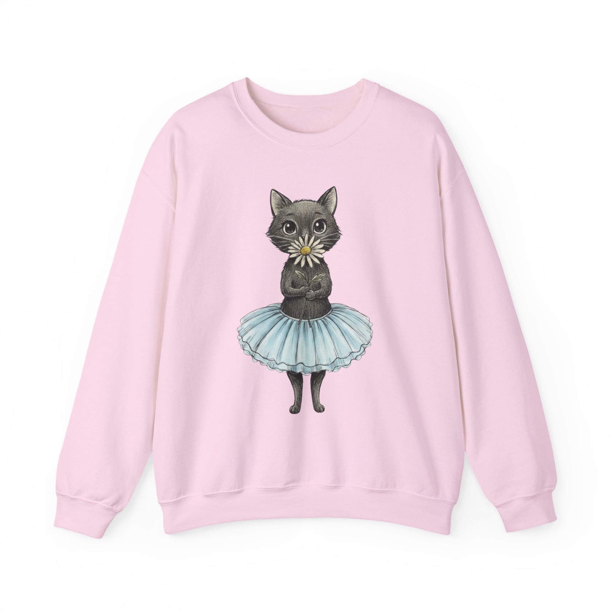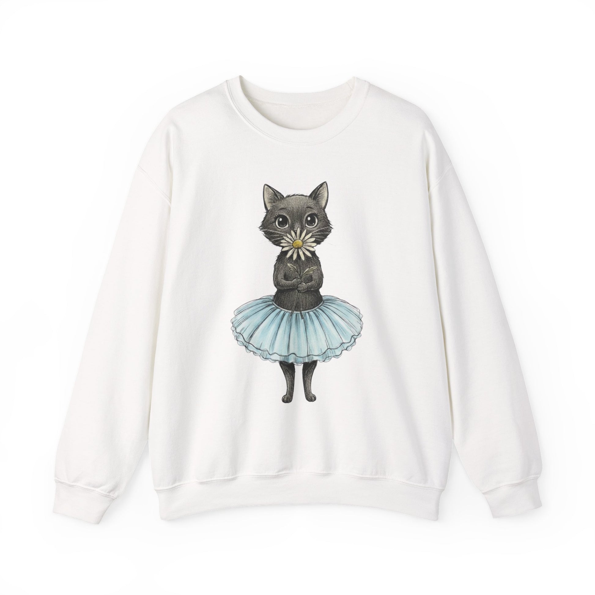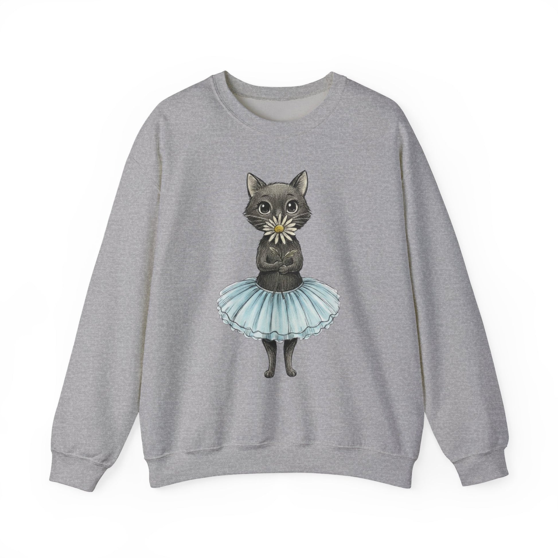 Ballerina Cat Holding A Daisy Unisex Heavy Blend™ Crewneck Sweatshirt